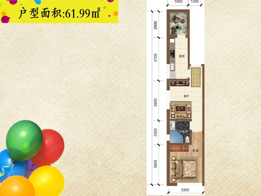 7#楼61.99㎡-1室1厅1卫-61.99㎡