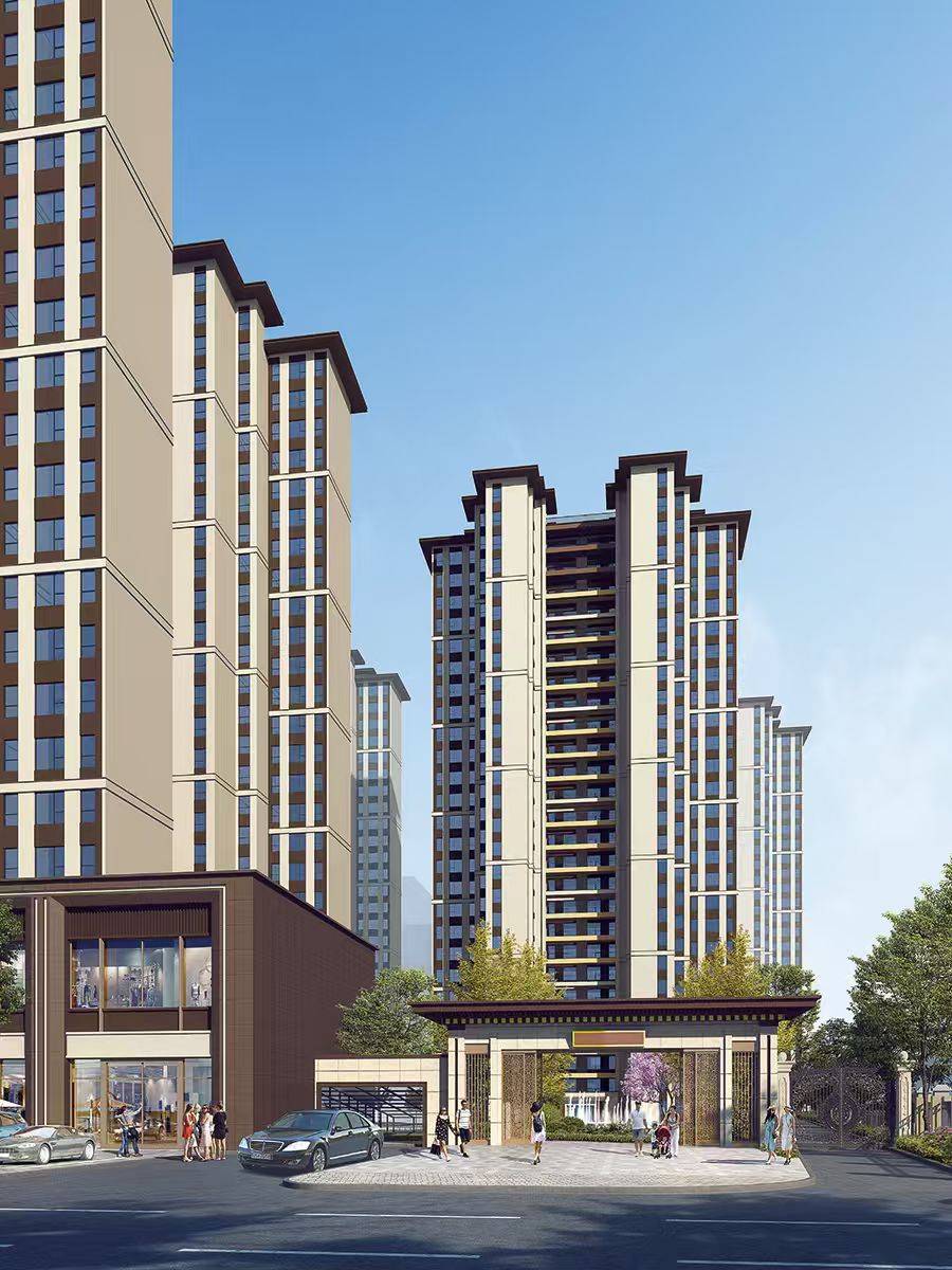 项目总建设占地面积约34亩;总建筑面积约9万㎡,其中地下建筑面积26266.2㎡,地上总建筑面积66976.52㎡,住宅建筑面积61763.84㎡,商业1987.82㎡。项目规划有5栋高层住宅楼,一栋幼儿园(项目配建一所3班幼儿园,面积约1100平米)。配备托老所、便民超市、社区服务中心、文化活动站等配套设施。可售总户数505户,容积率约2.9,车位配比约1:1.37,有610个地下停车位,69个地上车位。为了方便业主进出小区,规划有2处人行出入口,2处车库出入口。住宅均为2T4户高层布局,107-137㎡多重户型,兼顾刚需及刚改客群需求。户型南北通透,独立玄关;LDK一体化设计,南向三开间优质采光;主卧独立卫浴、衣帽间。建筑风格新中式风格,立面造型轮廓简单庄重。绿地率约32%,绿化呈现两轴三横多节点园林布局,北侧入口打造中轴景观带、运动跑道+风雨连廊入户,打造处处有景的小区庭院景观。