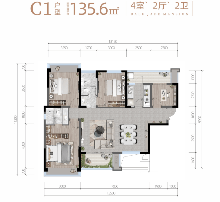 136m²户型鉴赏: