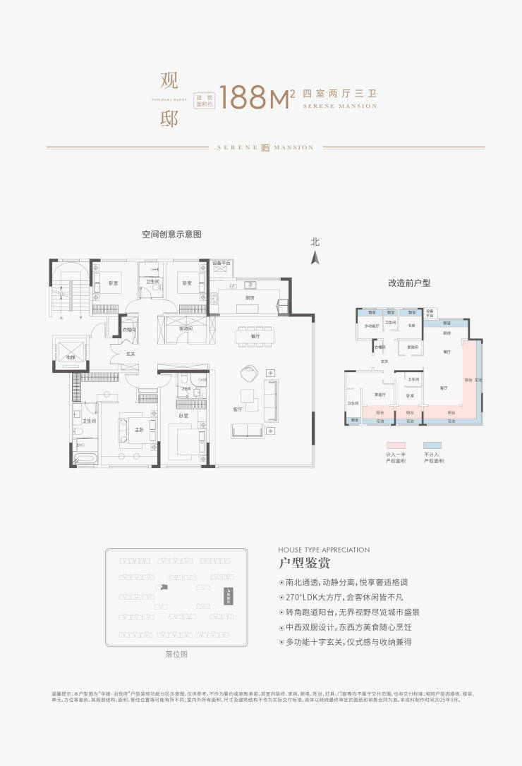 建筑面积约127-188㎡奢阔洋房,全系超100%得房率;底层大私家院落,顶层天幕星空露台,围合天地与美满。
