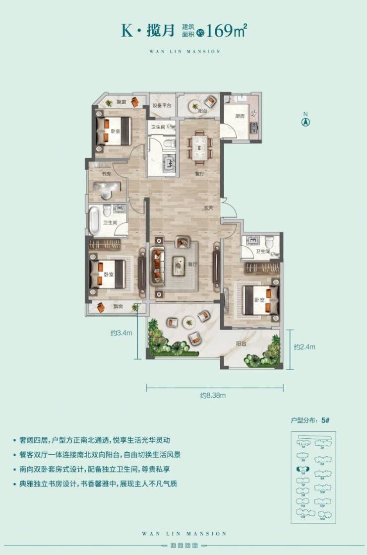 产品面积:建面109.125㎡ 三房 133㎡三房、158㎡三房、169㎡四房,179㎡四房华宅