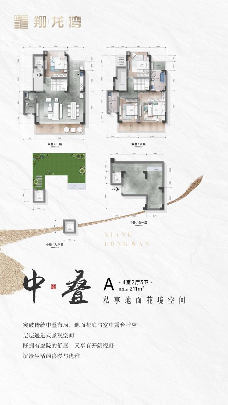 上、中、下叠诗意环绕意境悠长;约6米地下室入户,打造超然空间尺度;层层揽境式设计,与星空对望,与阳光相守,生活的每一面,都是景观面。