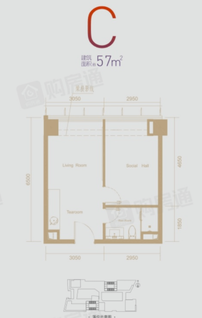 在售面积: 57-61套一 / 73平套二