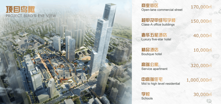 9.总体规划:总建筑面积超240万㎡,项目业态包含中高端住宅、高端公寓、低密商街、写字楼、五星级酒店等