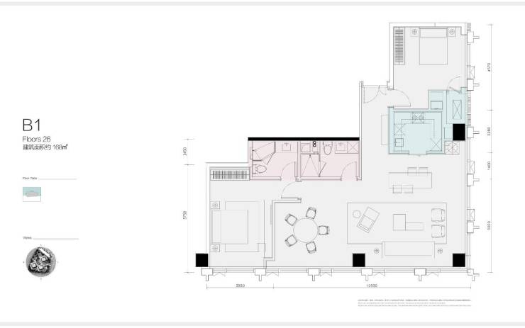 建筑面积:168-310-630㎡(168㎡臻稀余席)