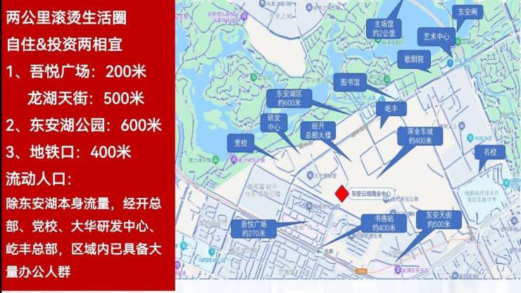 5、区域稀缺产品、4.2米幻变空间、一线瞰湖区域、1.5公里人口超过10万+,知名集团总部、甲级写字楼具备丰富客群。