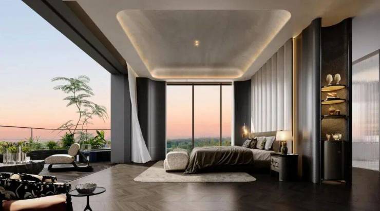 墅级双主人房,彰显平层生活的尊崇与平等在户型的空间内,金麟樾创新性地实现了墅级双主人房的配置。这深刻理解了高端家庭对私密、尊重与平等的生活需求,为男女主人分别提供了宽敞、独立且功能完备的套间空间,将平层大宅的舒适度与尊享感提升至新高度。
