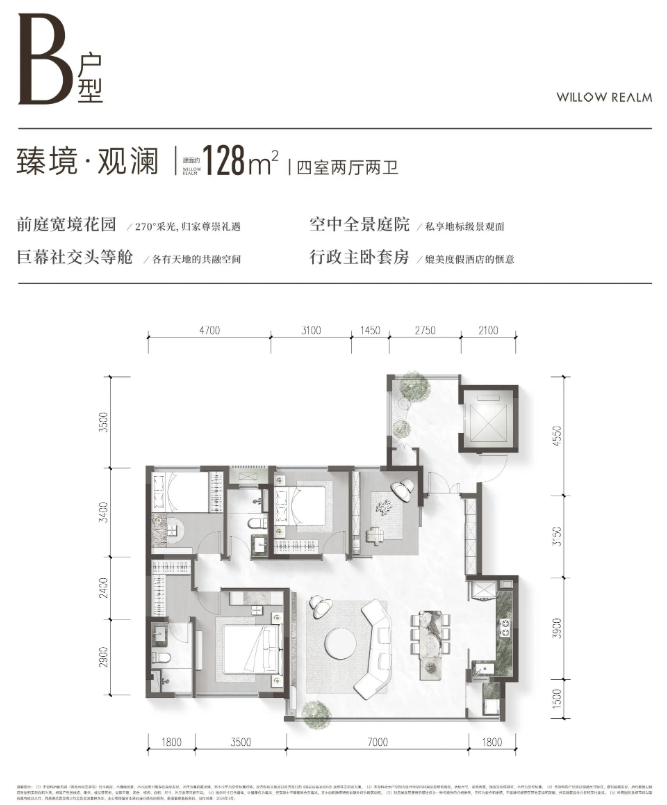 此户型定位为核心品质改善,四房配置为多功能房间(如书房、儿童活动室等)的预留提供了可能。更大的开间与进深确保了各功能空间的舒适尺度,能够承载更丰富的家庭生活场景,是追求一步到位改善家庭的理想选择。