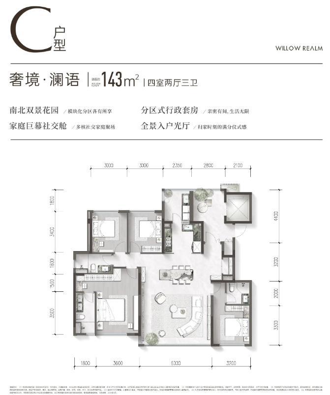 04 主力户型解析 全系104-143㎡精装平层,以新标阔境空间满足全家庭成长周期的改善需求