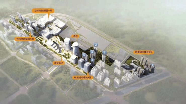 项目A、B两个区共九栋住宅,两栋写字楼,项目上盖物业是兰州科技创新园,目前网易公司已经签约入驻;项目自带大型的商业中心,集住宅、商业、办公、酒店为一体的城市综合体,包括五栋高层住宅及住宅底商、两栋高层办公楼及商业裙楼;