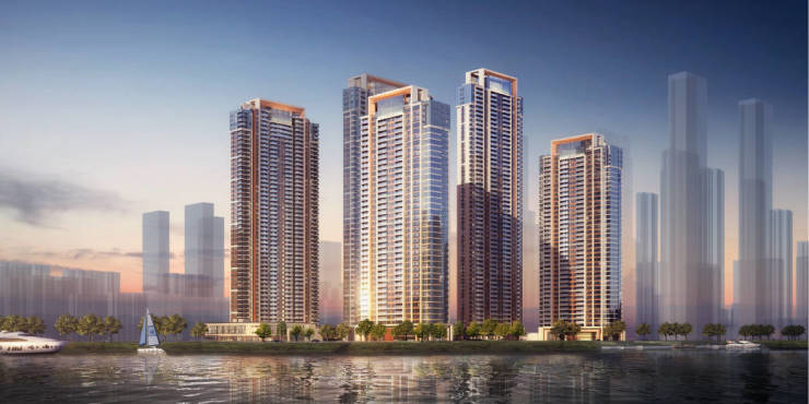 “上海汤臣一品”同款建筑布局,6栋超高层住宅U型排布,引江入户,视野无遮挡