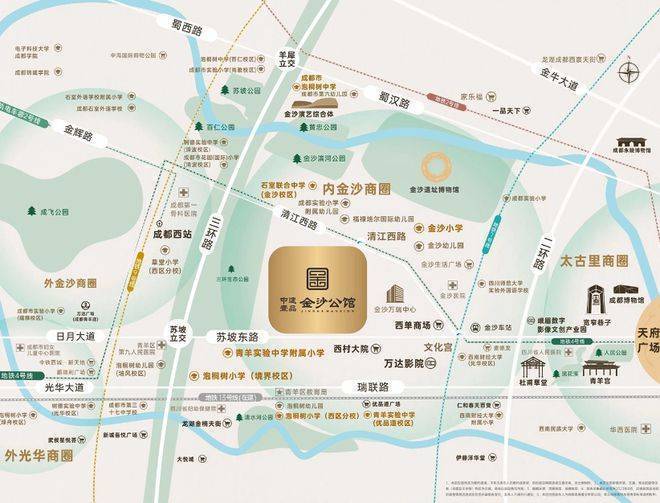 看遍人文青羊,内金沙无出其右。项目周边金沙小学、泡小(西区)、泡小(境界)、青羊区实验中学附属小学、青羊实验中学、泡中、石室联中,诸多名校,文脉书香。(金沙小学距本项目约250米,石室联中距本项目约750米.本项目具体对口学校以政府入学政策为准)
