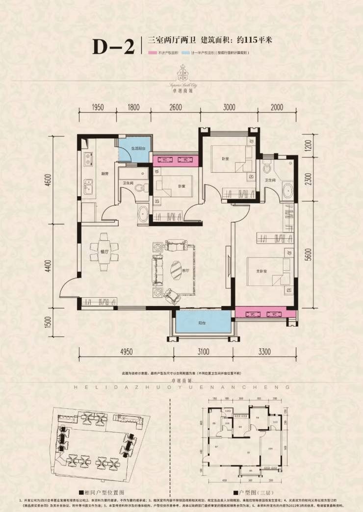高层 建面约89-115㎡ 三房两厅双卫