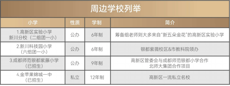 教育:新川科技园小学、高新实验小学(新川分校)、成都师范银都紫藤小学(南北校区)等,(具体可就读学校,以实时政府规划要求为准)
