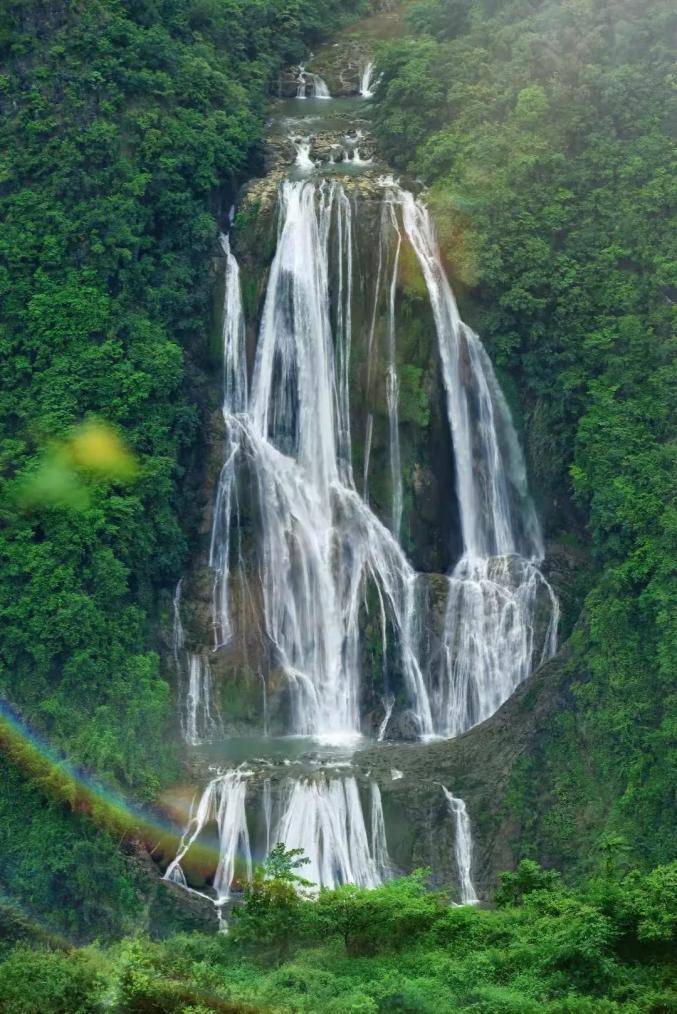 1. 视觉震撼——77.8米落差与101米宽幅形成的银练坠潭,雨季每秒700立方米的磅礴水势;