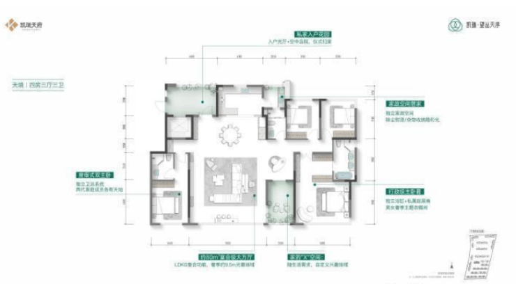 此系产品为2梯2户的板式平层,主打“情景化”生活体验。