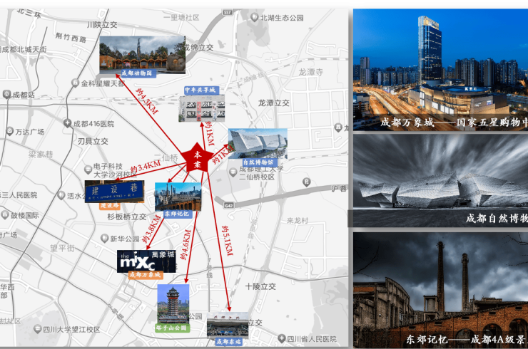 位于主城城东2.5环,占据杉板桥东核心资源,5KM范围内,驱车不到10分钟便可到达4A景区东郊记忆、城东代表商业体-万象城等成都地标建筑,“零距离”享受专属主城的各类地标级配套,坐实杉板桥东的地段价值