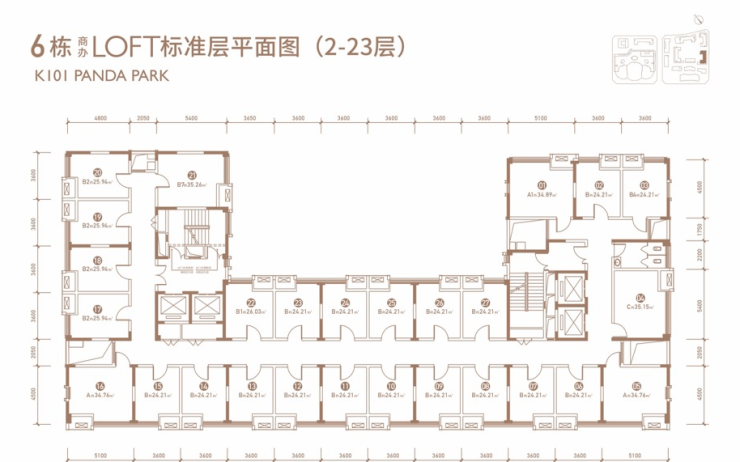 一期推出2521套精智LOFT,主力户型24㎡套一总价32-33万,34㎡套二均价46万。4.2米层高设计,5栋为清水交付,6栋提供精装方案(24㎡装修费4.3万/套,34㎡5.3-5.6万/套)。4梯27户配置,单层面积709-716㎡。