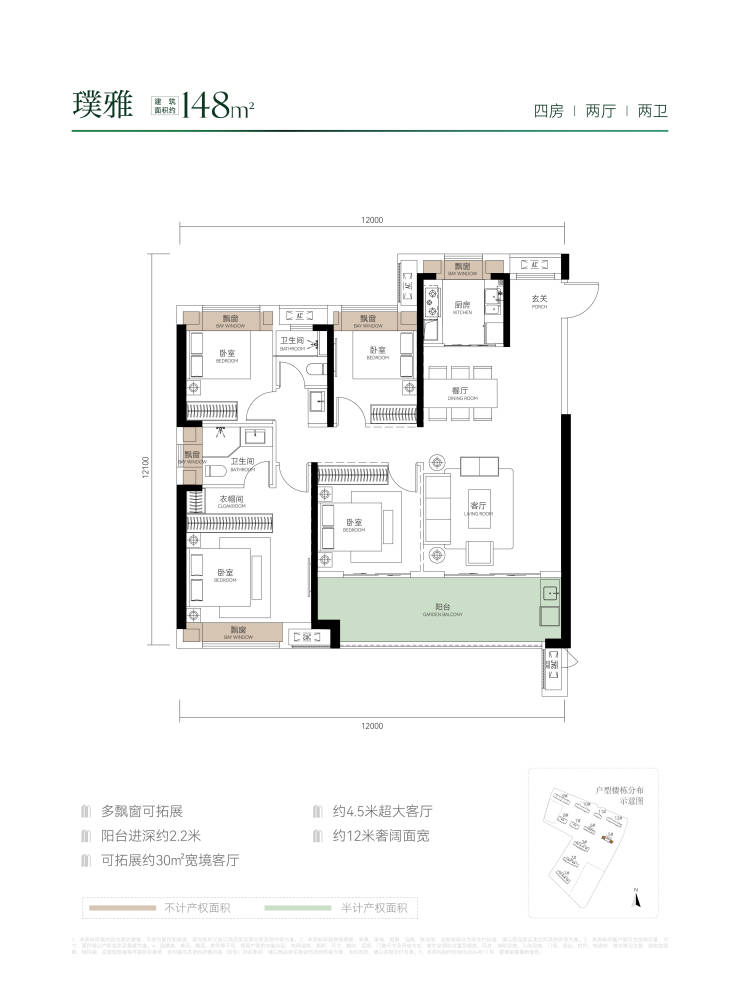 交付时间:26年12月,毛坯交付洋房10-14层,面积段138-150-172,得房率90%-94%,层高3.15米高层27-39层,面积段106-137-148,得房率87%,层高3米