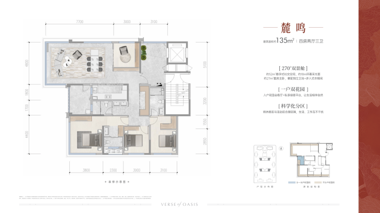 约40㎡全景方厅,超20㎡奢阔主卧套房搭配全尺寸次卧