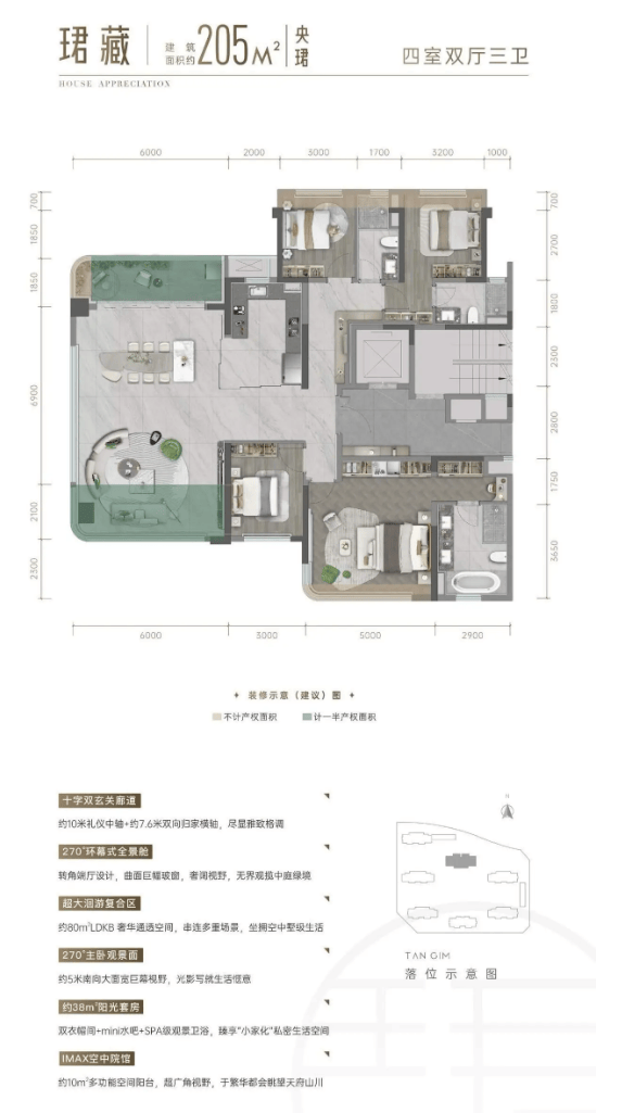 此户型是项目的巅峰之作,定位为可传承的家族资产。它拥有更为奢侈的客厅面宽与家庭公共区域,可从容规划