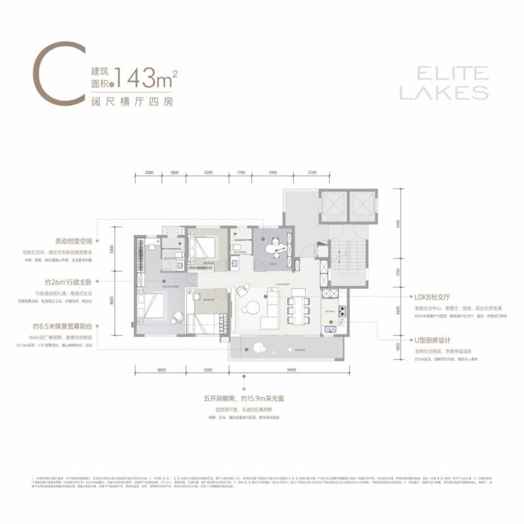 143㎡户型:15-17层 双电梯双户 尊享入户 舒适四房