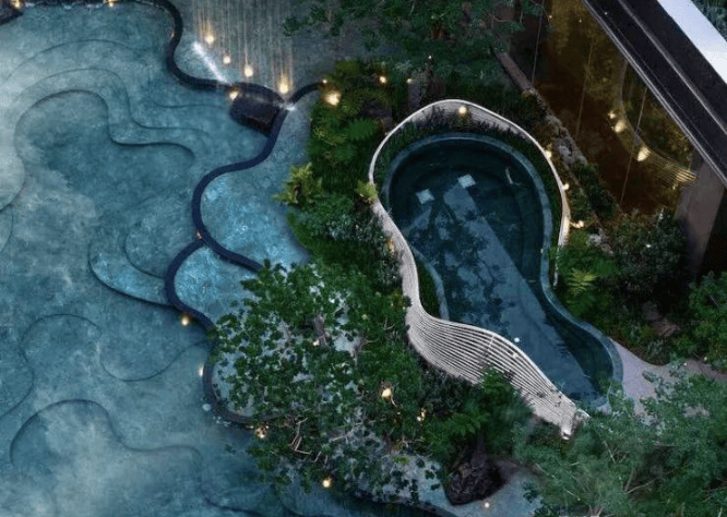 02 项目规划与设计 以“非流水线豪宅”的极致匠心,打造玻璃光幕立面、温泉酒店式会所与带私汤户型,重塑高端生活美学