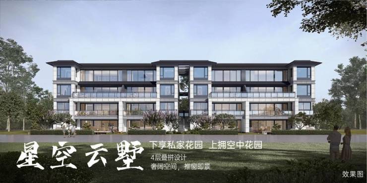 ②星空叠墅:2梯4户 4层叠拼建面69-93m²;实得约125-185m²(户户带入户花园),精装总价72万-110万