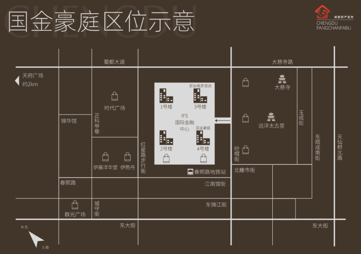 国金豪庭雄踞锦江区北纱帽街 1 号(IFS 国际金融中心 4 号楼),地处成都 “千年城芯” 春熙路 - 太古里商圈核心,其区位稀缺性体现在三方面: