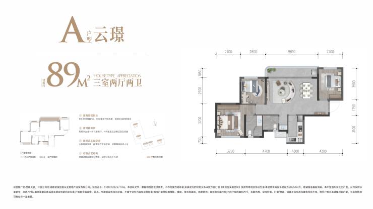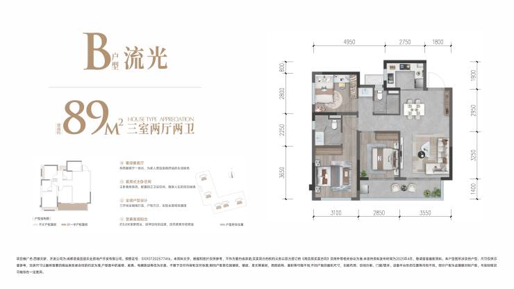 稀缺户型:89㎡套三双卫,主城稀缺小户型