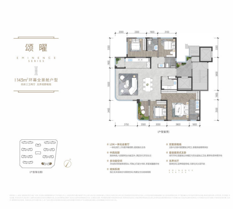 在售面积:约143 -175 -199 ㎡ 精装四房