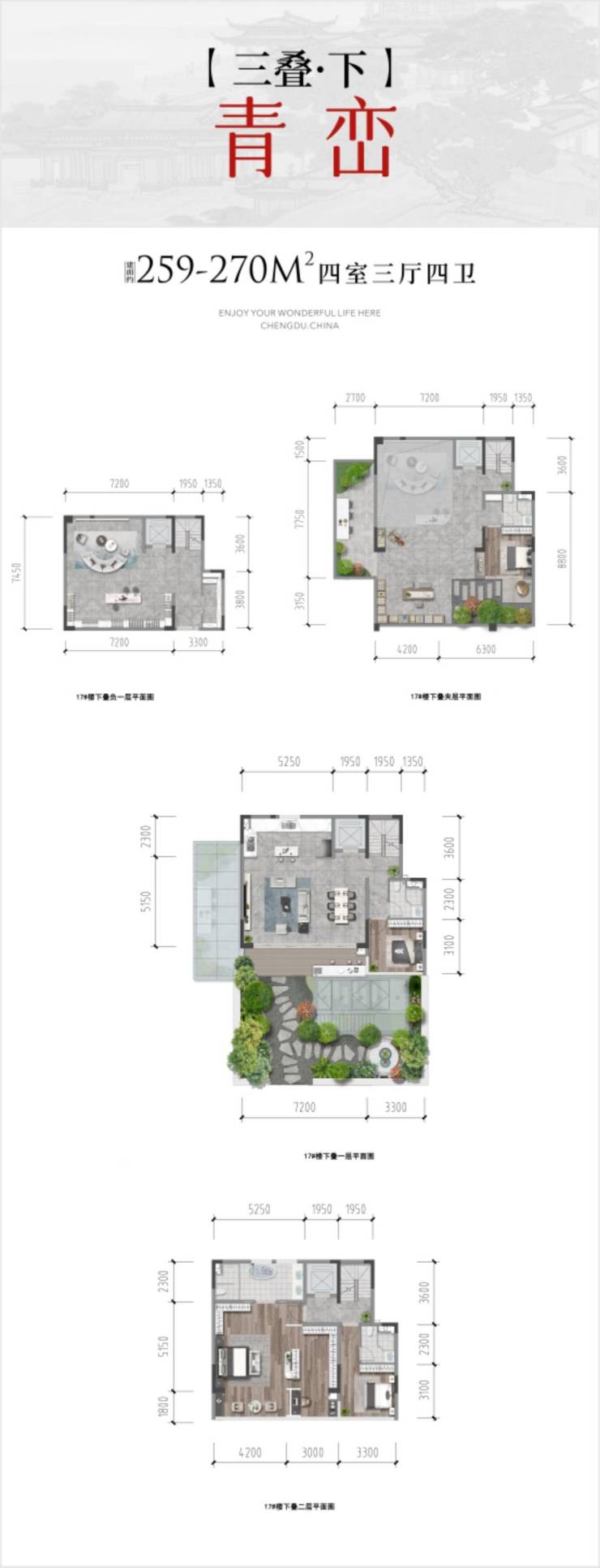 下叠259-270㎡(青峦)。1楼花园70-80平,610-680万