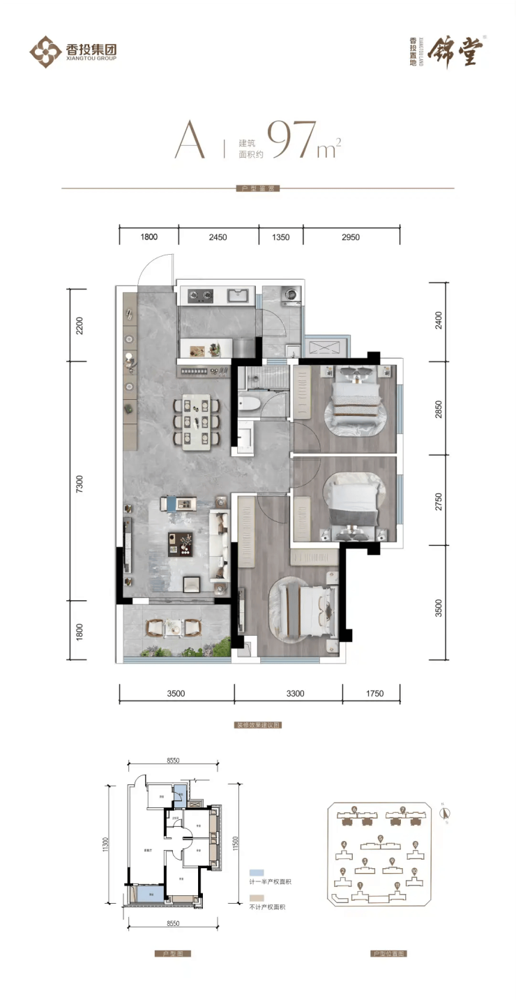 观景洋房(8#、10#、11#清水交付):建面约137㎡,赠送面积约22㎡