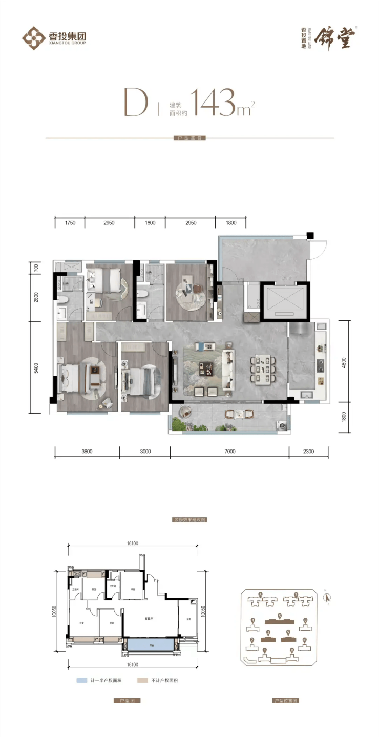 中庭楼王(3#、5#、9#精装交付):建面约143㎡