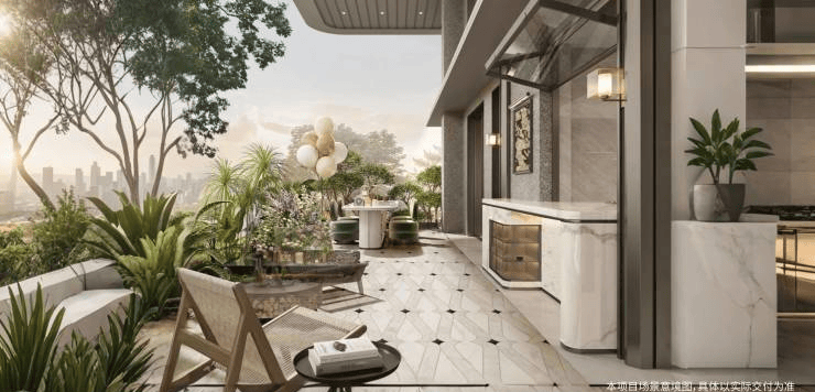 项目汲取新加坡花园城市灵感,打造高定 “收藏家花园”,核心亮点便是每户标配的约 6 米挑高无界星空庭院 —— 这并非简单的阳台拓展,而是真正意义上的 “空中庭院”,让业主在城市高空私享云端视野与庭院生活。