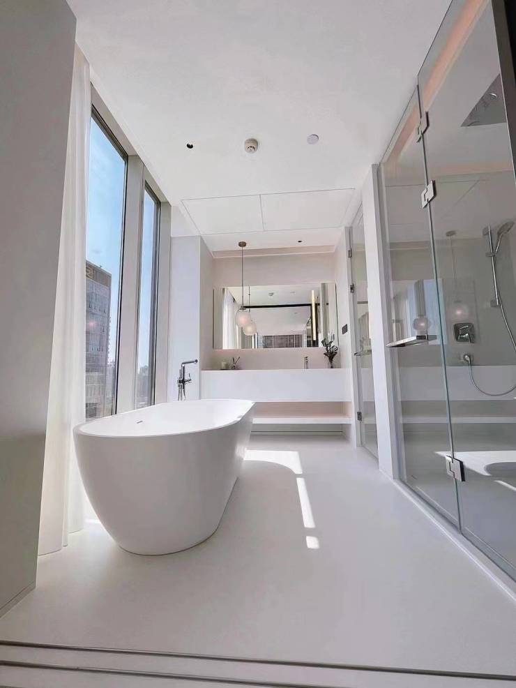 选用杜拉维特卫浴、汉斯格雅五金等国际一线品牌,中央空调+新风+地暖系统,为精英人士定制轻奢生活场域。