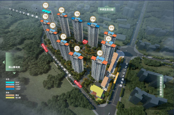 生态: 约400亩中央生态公园,定位为‘都市绿核,城脉贯通,山水映秀,魅力新城”,是主城唯一国际化公园绿肺,“丘、谷、湖”为主题,形成“一轴三带”的景观布局。南山景观带,截止2018年,绿化面积增至60万亩,天然城市绿肺产生亿万负氧离子滋养生命。