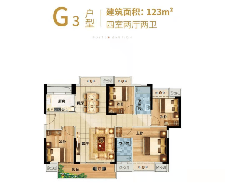 洋房(7100元/㎡):约131㎡(四房);