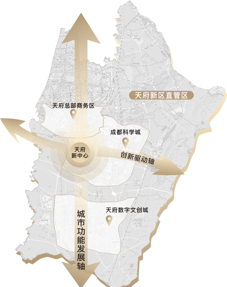 天府新区是由国务院正式授牌的国家级新区,承担着国家重大发展和改革开放战略任务。秉承成都“一城双核”的发展战略,天府新区直管区重点打造三大产业功能区,着力构建“成都未来城市新中心、成渝地区双城经济圈创新极核和开放门户、国家级新区高质量发展样板和中国式现代化公园城市先行区”。