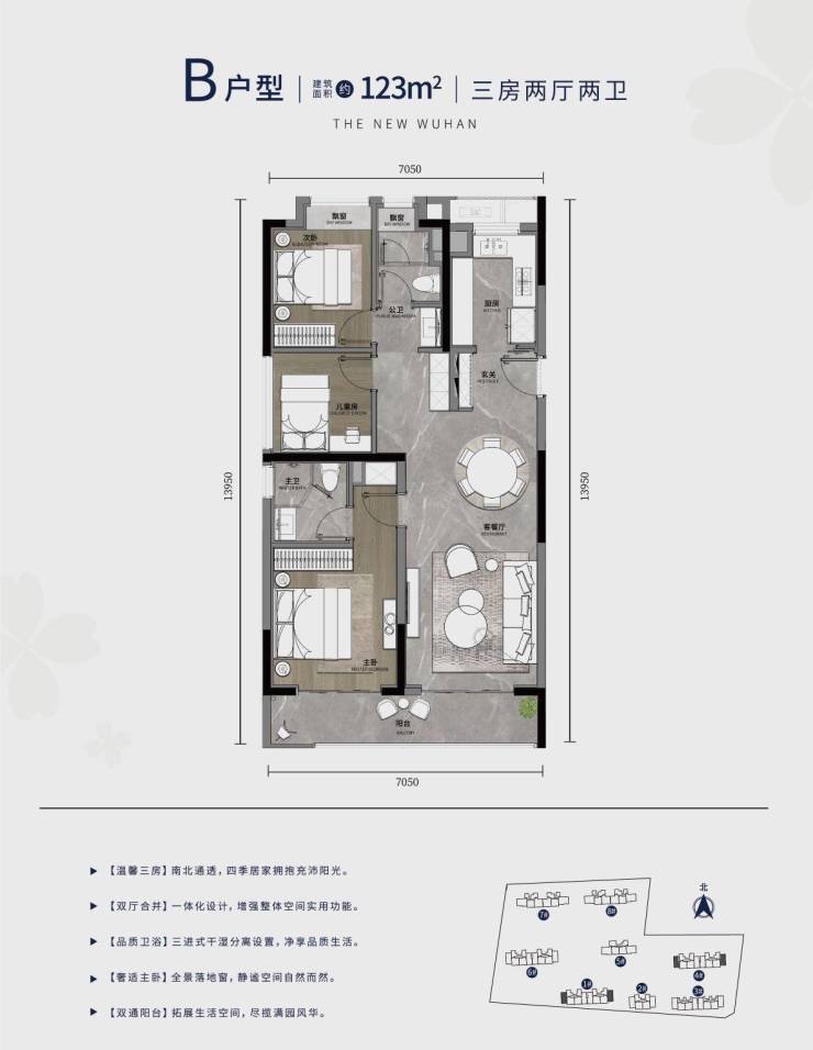 123和139三房有中间一点的楼层(加推房型数量有限,请拨打027-85536080 免费咨询)
