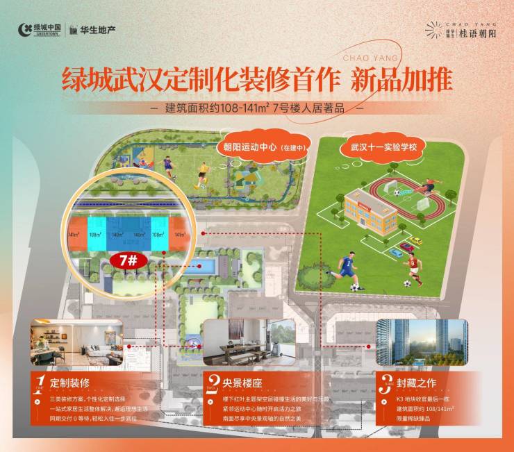 作为下一代未来住区样本,绿城华生·桂语朝阳以绿城二代高层桂语系产品,打造集教育体验、运动健康为主题的年轻复合型活力社区,为大汉口人居开启绿城美学新风。