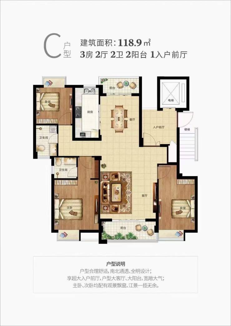 建面约101-120ⅿ²品质住宅(三房两厅两卫)