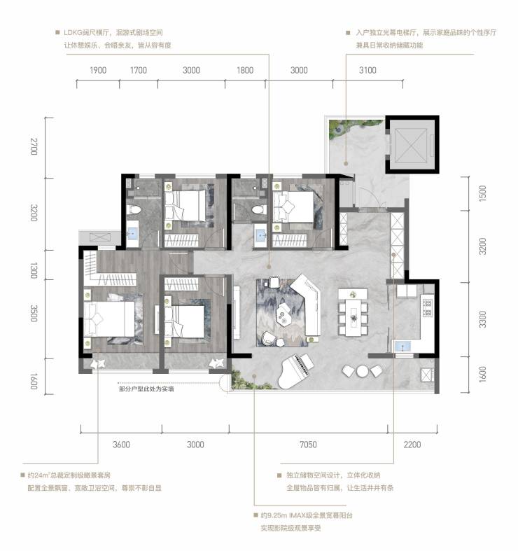 约13.4m面宽,配置约6.8m广角阳台,奢享墅级空中花园