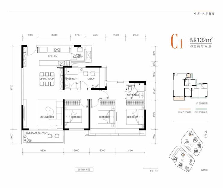 132㎡楼王户型——四室两厅双卫,LDK一体化设计,主卧套房配置