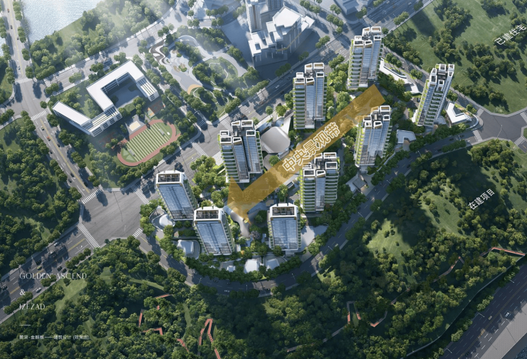 项目对内,还以≤2.0低容积率规划,打造约200米超尺度中央景观带,通过围合式布局实现真正的“视野平权”。