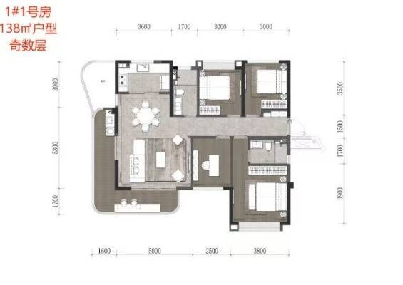 洋房:3.5-3.6万/㎡ 总价:500-630万