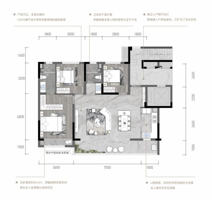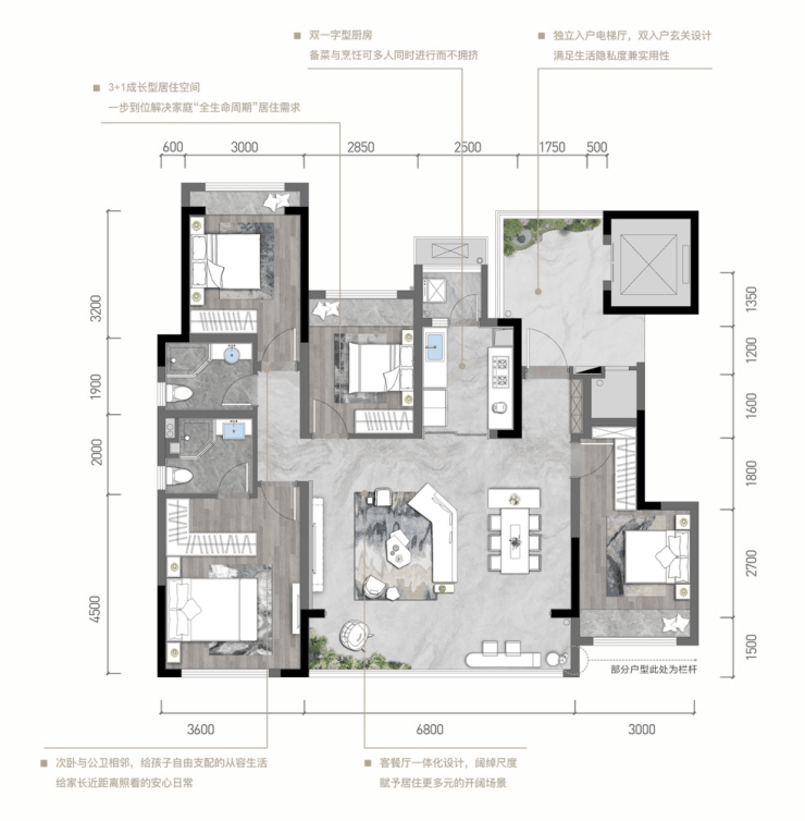 户型解析:17层纯板式小高层,全南北朝向,每一户皆享开阔视野与舒适体验;两梯两户私梯入户,入户独立门厅设计,全明采光,自然通风;约16m朝南面宽、约3.1m墅式层高,享全天候阳光奢适生活;约9.25m阔景巨幕阳台,墅级空中花园,收藏窗外绚丽景观。