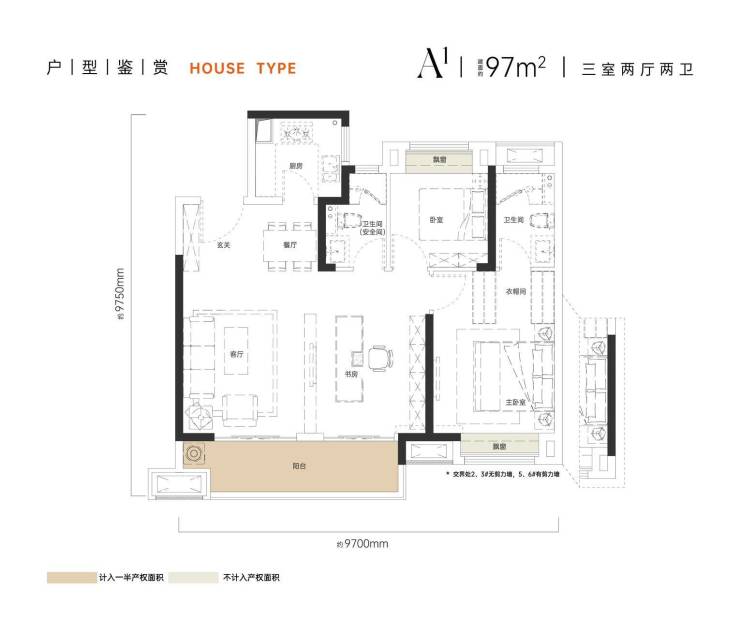 A1 建面约97㎡三室两厅两卫