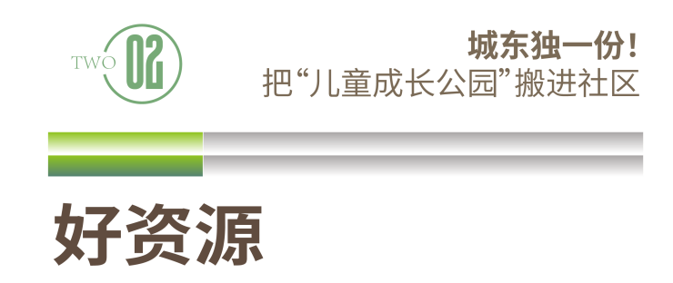 约160亩上璟公园,定位“城东首个儿童成长主题公园”,以1条约1.5km溪谷河道+1条约1km蓝花楹大道+3大归家公园绿道+6大公园直连社区,构成大盘生活的物理场域。
