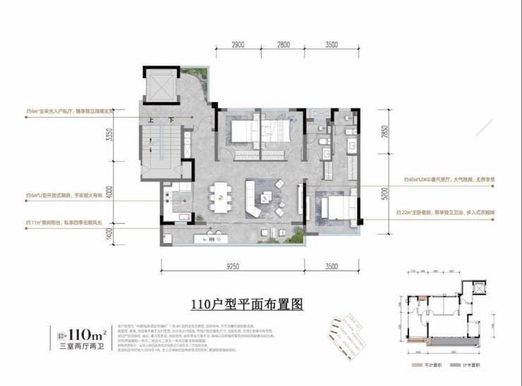 · 22㎡主卧套房配置独立卫浴及衣帽间